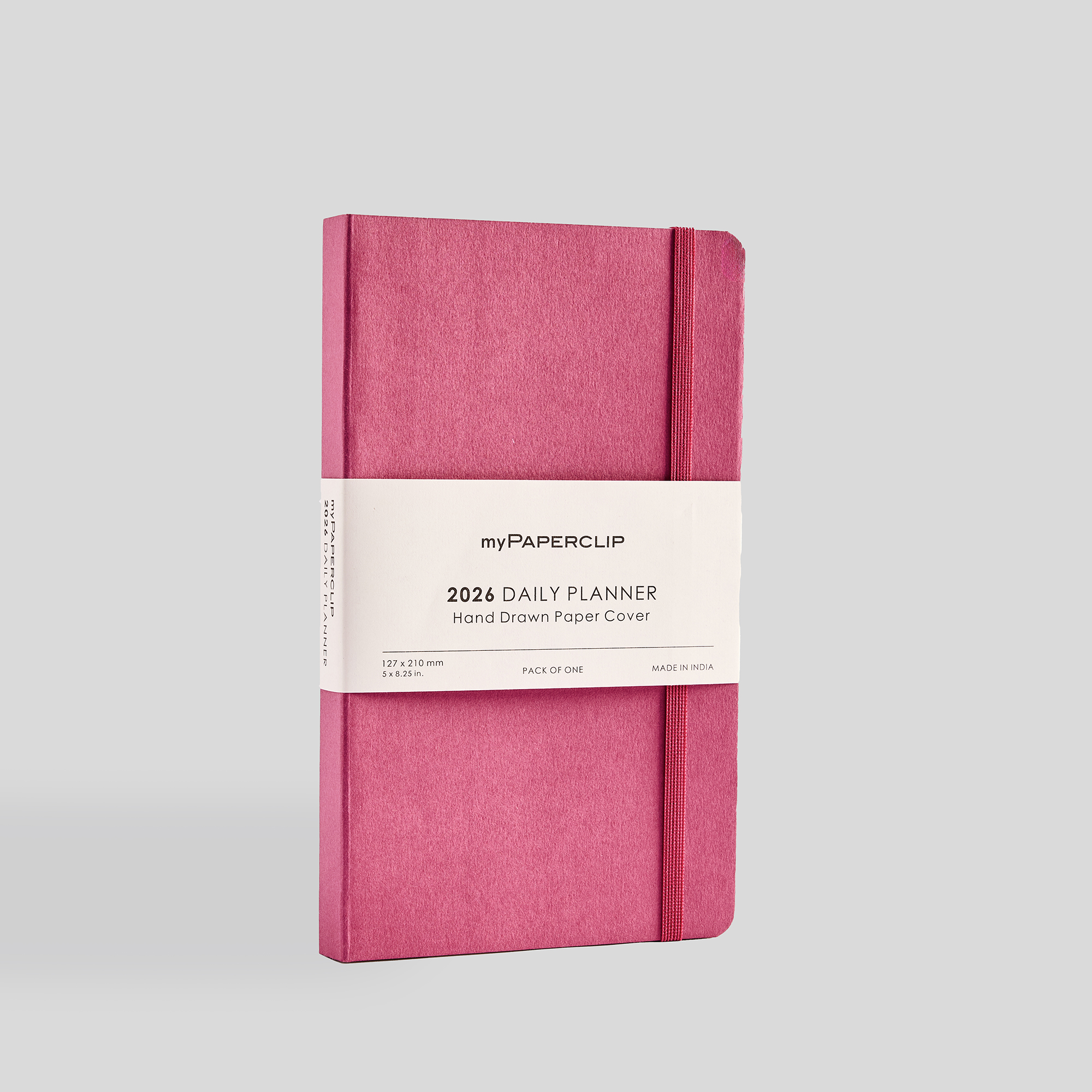 Achieve new level of productivity with myPAPERCLIP 2026 Daily Planners with ruled pages for notes & tasks. The page a day 384 pages planner also includes important dates, calendar & year planner. The Soft Cover Planner is section thread bound and has hand drawn cover with rounded corners, a bookmark and an elastic closure. The covering material is Wibalin Finelinen, Natural or Buckram from Winter & Company, UK.
