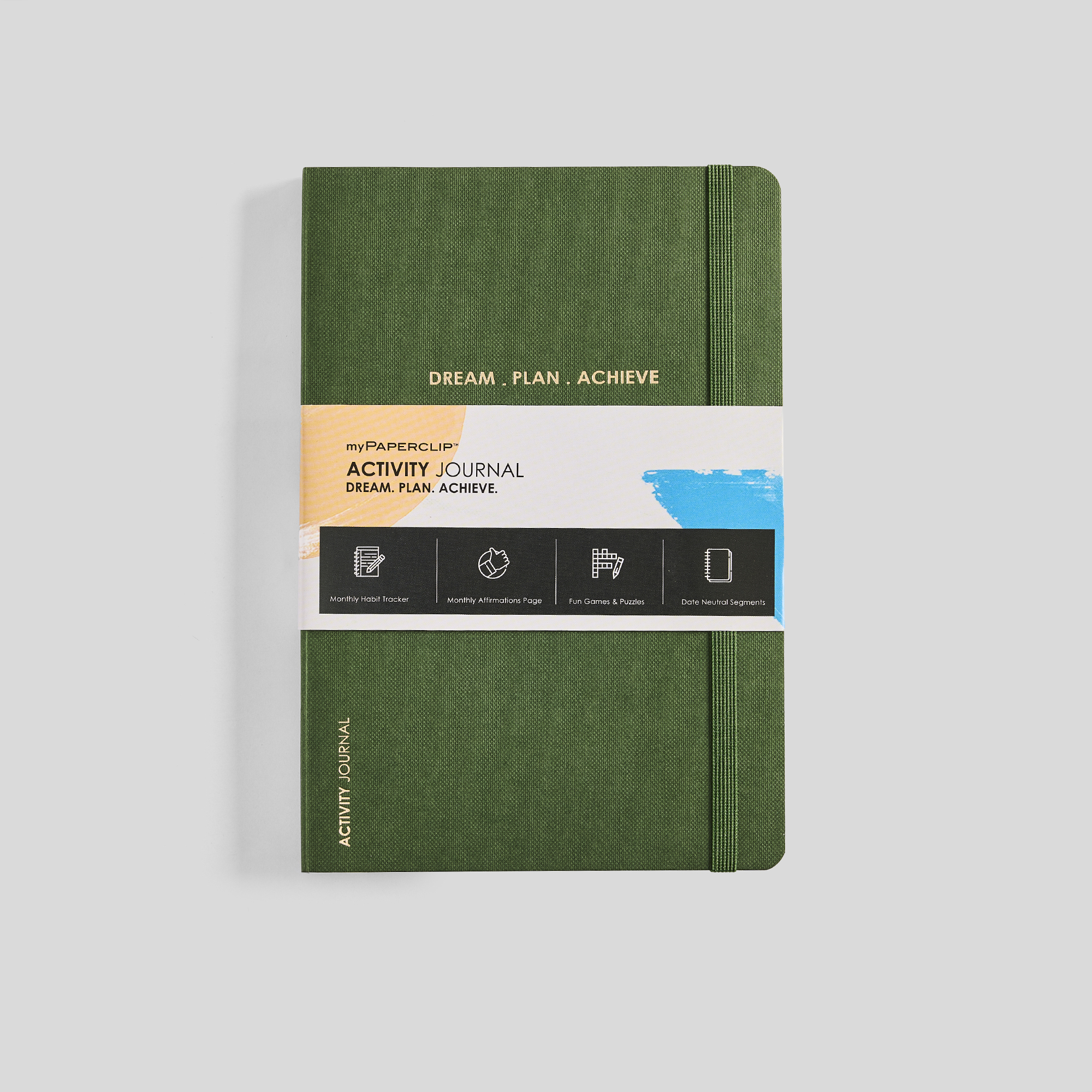 DREAM. PLAN. ACHIEVE. Monthly Habit Tracker / Monthly Affirmations Page / Fun Games & Puzzles Achieve new levels of productivity with myPAPERCLIP Activity Journal comprising date-neutral segments to keep you on track. Each segment contains space for notes and tasks. A habit tracker for each month serves as visual proof of your hard work, and the monthly affirmations page helps you release negativity, fear, and anxiety. Fun games and puzzles at the end of each section allow you to take a breather from your hectic schedule. The 144 pages journal is made with 80 GSM Munken Premium from Arctic Paper, Sweden and is available in Dotted, Plain or Ruled pages. The covering material is Wibalin Buckram from Winter & Company, UK. Key Features Durable Buckram Cover Environmentally Friendly Fountain Pen Friendly 12 Month Agenda Planning Track Habits & Affirmations Save Critical Dates Relax & Unwind with Fun & Games